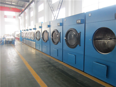工業烘干機是洗滌機械中的一種,一般在水洗脫水之后,用來除去服裝和其他紡織品中剩余的水分。將洗滌后脫水過的布草衣物放置在滾筒內,然后烘干機的滾筒轉動或者正反轉動,通過將熱風吹過布滿網孔的滾筒使得布草衣物中的水分即使蒸發干燥并被迅速帶走。